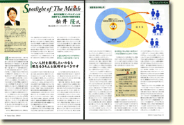 間違えてはいけないのは、企業側が、『採ってやる』『雇ってやる』という自分サイドの観点で採用活動を行なわないこと。面接とは、企業と個人の出会いの場であり、双方が満足するものでなければ入社には至らない。エリートネットワークは『信頼出来る人を信頼出来る企業に紹介する』という経営方針を持ってカウンセラーが転職希望者一人一人とじっくりと面談を行い、その人の考え方や職業感に合致した理念や就業環境を持った企業へと引き合わせるのである。人材紹介業界における同社の高い評価は、その考えが正しいことを証明している。