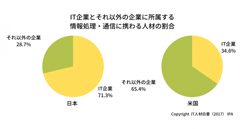 一方で米国では、2021年時点でIT企業所属が35.1%に対し、IT企業以外が64.9%と、多くのIT人材が事業会社側で活躍しています。この事実は、日本の事業会社がいかにエンジニア不足に直面しやすい構造であるかを示唆しています。