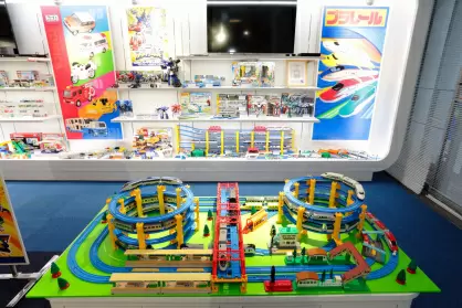 そして、この時期のおもちゃの技術革新に対応した代表的な商品が、1959年発売の「プラレール」の原型となった「プラスチック汽車・レールセット」という電動の鉄道玩具です。