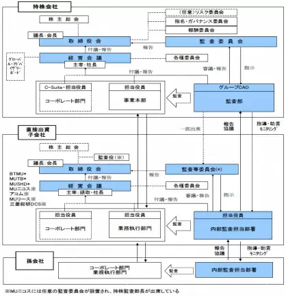 吉藤氏:MUFGグループは、社外取締役が過半数を占める「監査委員会」を設置し(銀行・信託・証券の主要な子会社は「監査等委員会」)、監査業務が適正に行われているかを監督することでガバナンスの強化を図っています。約250名のメンバーを擁する私たち持株会社及び銀行の監査部は、監査計画をはじめとする重要事項についてこの監査委員会に報告し、指示を受けながら監査活動を推進しています。グループCAOと監査部長を兼務する私も、監査委員長の監督下で公正に業務を執行する立場にあります。