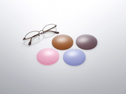 同社のフォトクロミック化合物をメガネレンズに塗布することで、速発・退色性、高発色性、耐久性、紫外線カットといった特性を持たせることが可能。屋内では普通のメガネだが、屋外では太陽光(紫外線)に反応して色が付き、まぶしさから目を守ることができる。