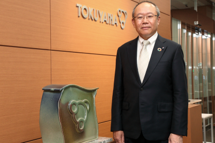 私が社長を拝命する5年前、特殊品部門の乾式シリカ事業に責任者として携わりました。トクヤマでは半導体用の高純度多結晶シリコンの製造工程における副生成物を原料として、シリコンウエハの平坦化に研磨剤として使う微細なシリカ粒子を製造しています。