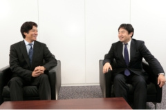 インタビューに真剣にお答え頂きつつ、時折、お互いに顔を見合わせる仲睦まじい(?) 両代表。