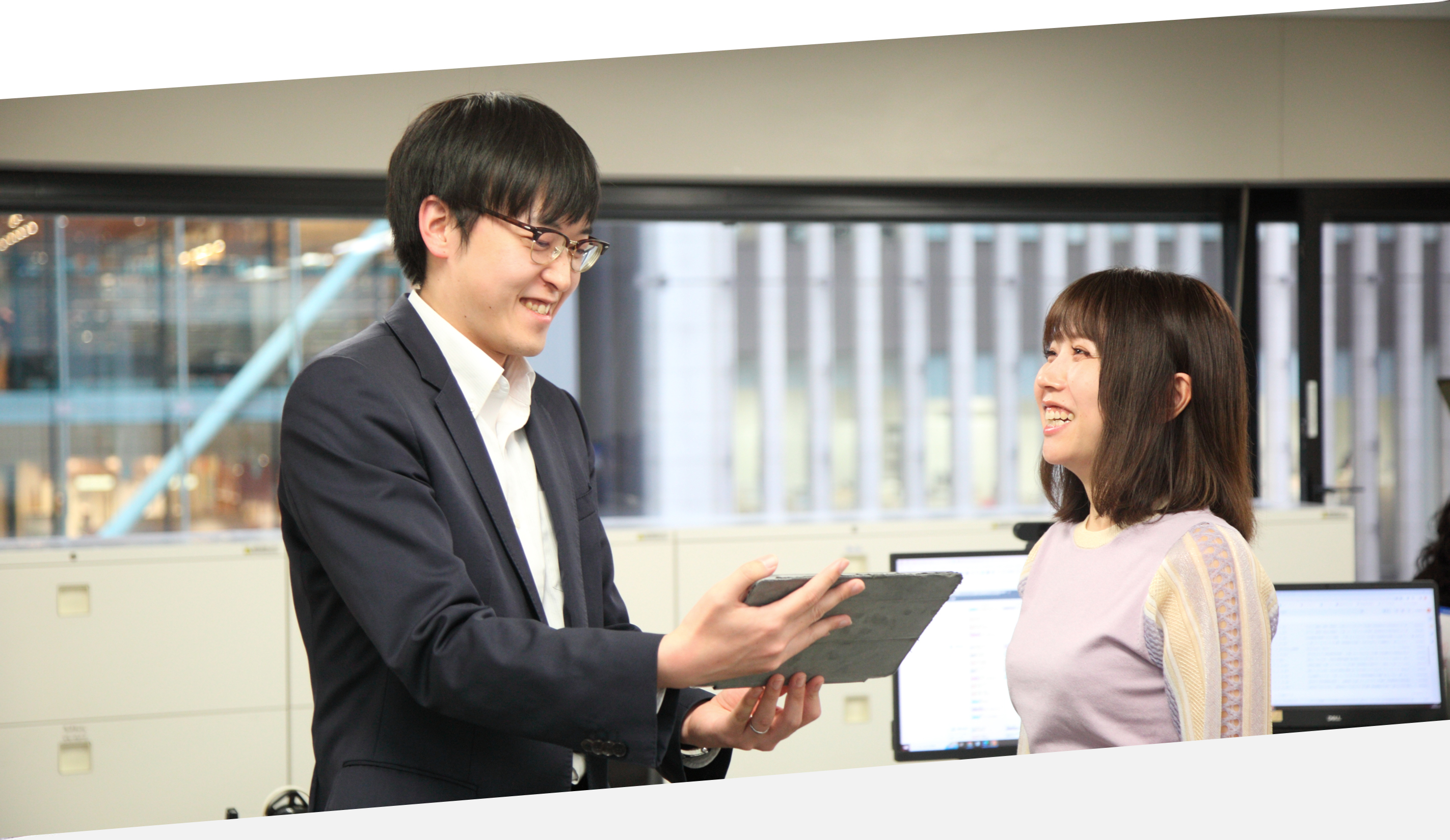 四六時中、専任の先輩がそばに居られるわけではありません。 そんな時でも安心して仕事に臨めるように、全社員があなたの先生役になります。 みんなで見守り、指導します。 各先輩の仕事に対する考え方に触れ、仕事の進め方を学び、どんどん吸収して、 いち早くビジネスパーソンとして独り立ちして下さい。